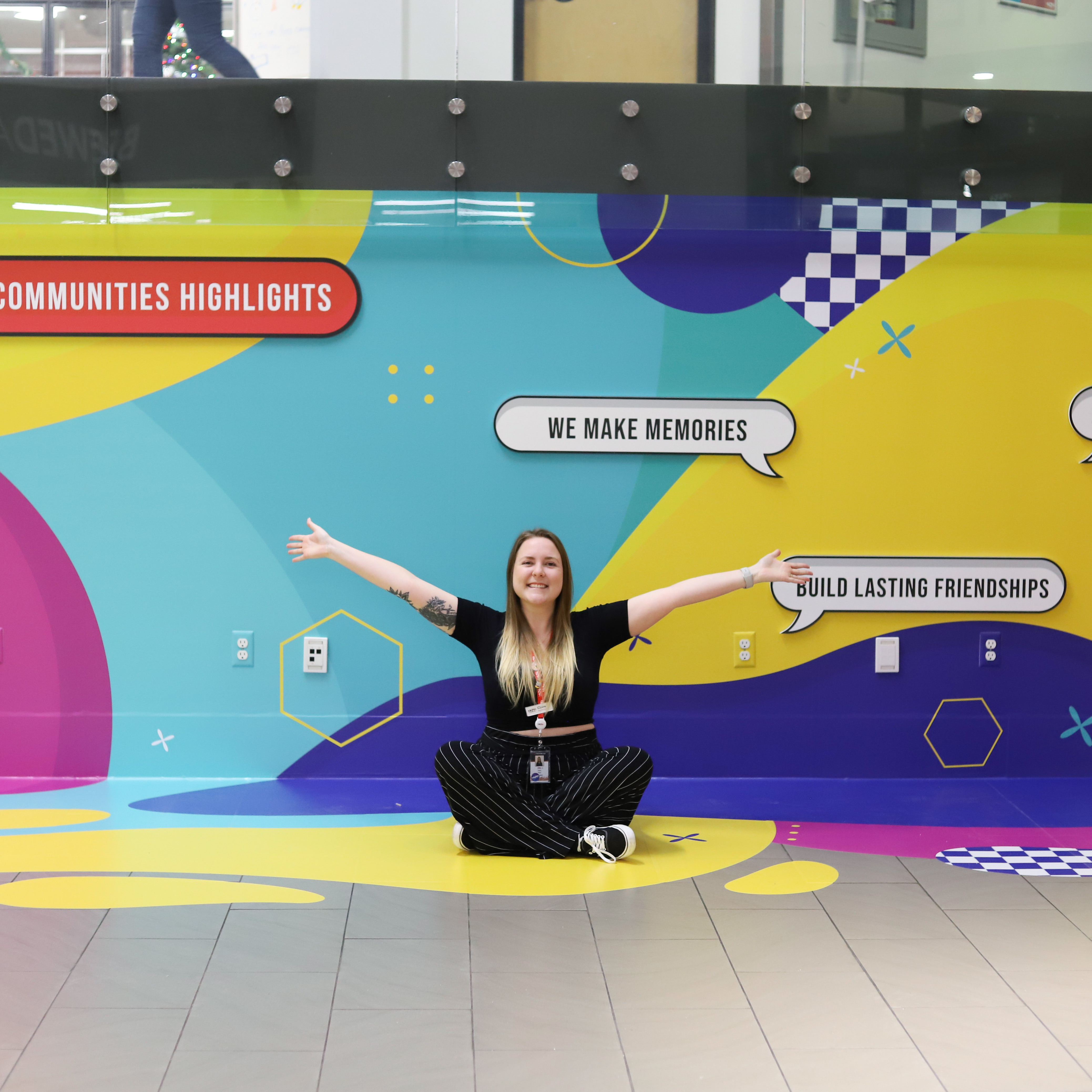 According to Price, she used many MSA sub-brand colours throughout the design, with Clubs & Communities yellow dominating the mural.